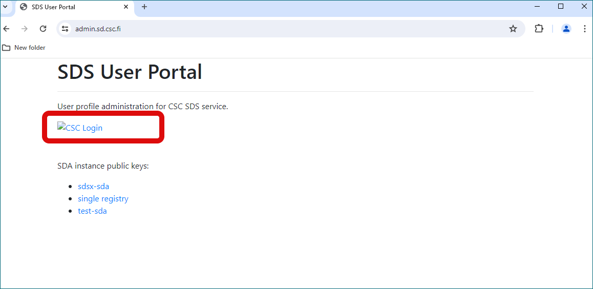 - Kirjaudu sensitiivisen datan käyttäjähallintaportaaliin. Jos sinulla ei ole HAKA-tunnusta, kirjoita asiakastukeemme ja pyydä CSC-käyttäjätunnusta. Käyttäjätunnuksen perustaminen kestää muutaman päivän.